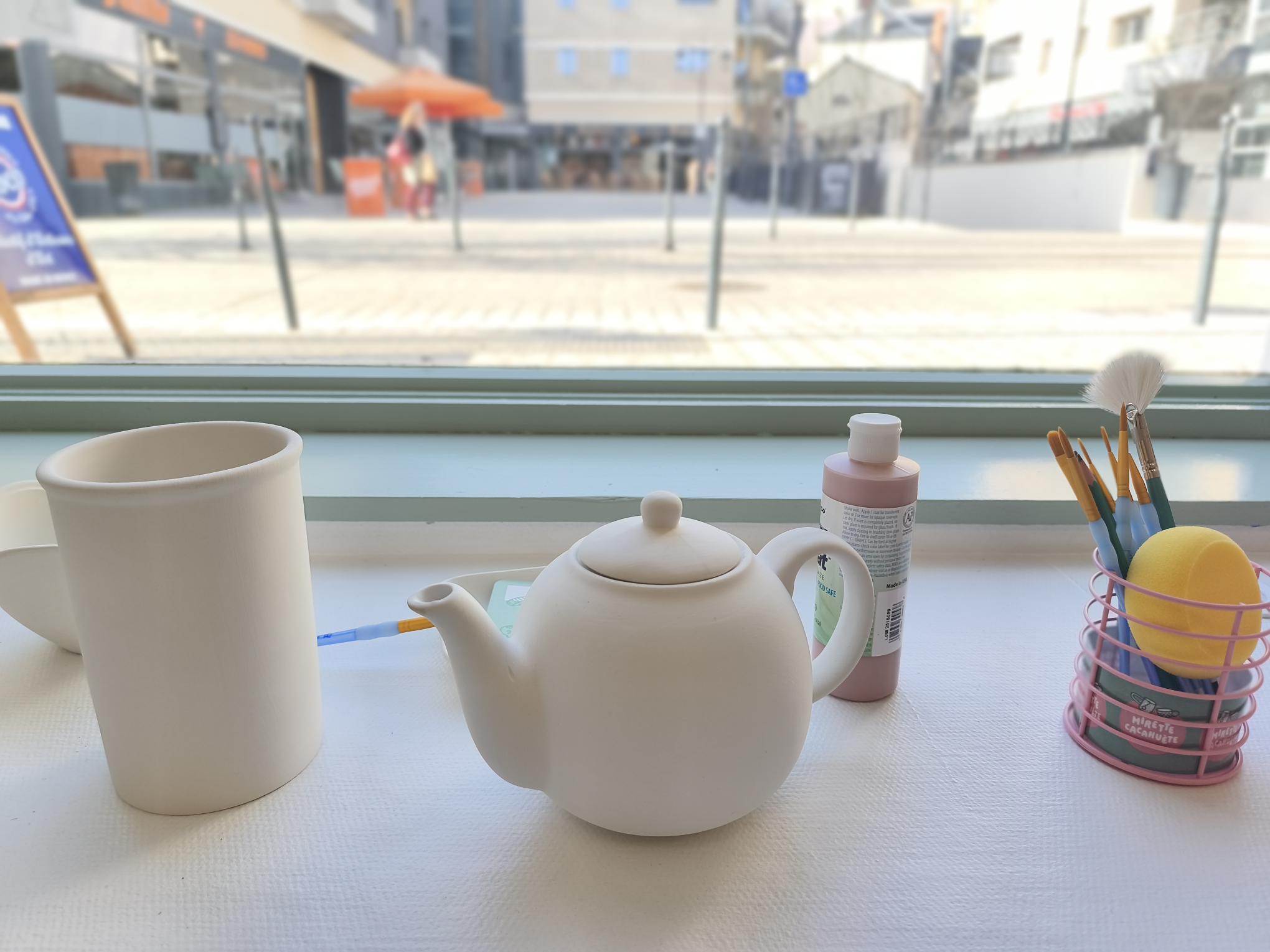 Le principe : choisir une pièce en céramique parmi une large sélection — tasse, mug, assiette, bol, beurrier, coquetier… — puis la personnaliser selon ses envies grâce à la peinture. Que l’on soit débutant ou passionné, chacun peut laisser libre cours à son imagination dans une ambiance chaleureuse.